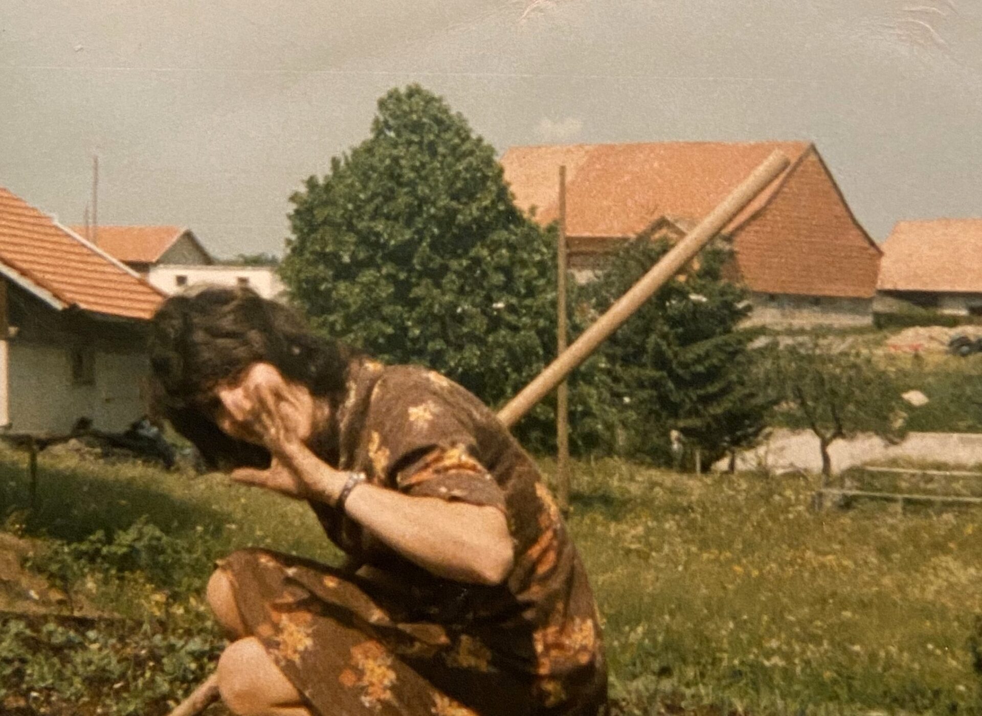 Il garde intuitivement la maison. Les portes restent grandes ouvertes pendant la pause de midi et personne ne rentre. Dès le retour des ouvriers Dick n’intervient plus sauf si la petite dernière s’éloigne trop du périmètre, il la ramène par la jaquette!